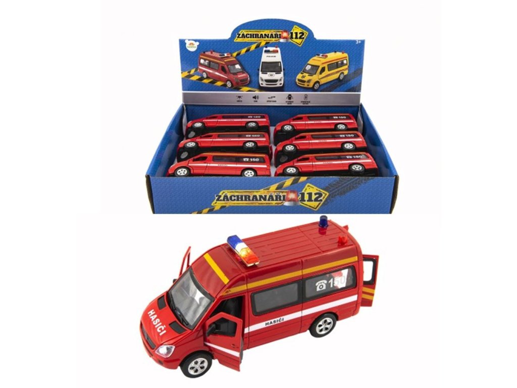 Teddies auto záchranáři hasiči 15cm na baterie se světlem a zvukem na zpětné natažení