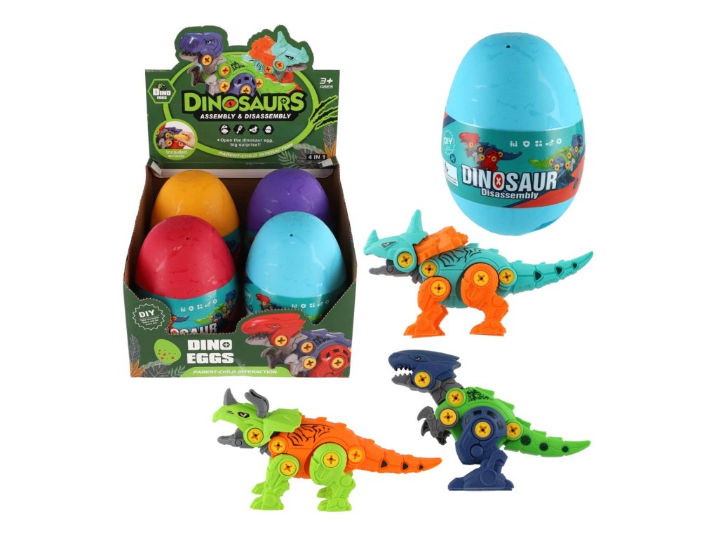 (BAL:1/4/32/64ks) Dinosaurus šroubovací ve vejci plast 15cm Rozšroubujte si vlastní dobrodružství! Dinosaurus ve vejci je zábavná stavebnice, která potěší každého malého stavitele. Vajíčko ukrývá šroubovacího dinosaura, kterého si děti samy složí pomocí přiloženého mini nářadí. Hra rozvíjí jemnou motoriku, trpělivost a představivost. Podporuje interakci rodičů a dětí.Druhy: Velociraptor, Horned Dragon, Tyrannosaurus, Triceraptops. Barva: červená, fialová, oranžová, modrá.Velikost: 15 x 11cm.Barva: červená, fialová, oranžová, modrá. Vhodné pro děti od 3 let.Materiál: plast.Prodej po 4ks v boxu.Rozměr boxu: 22,5 x 22,5 x 16 cm. Cena za jeden kus.Doplňkové parametry