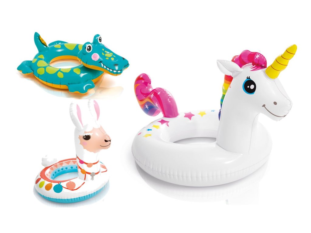 (BAL:1/36ks) Intex kruh nafukovací tvar zvířátko 71-107cm 3-6let. Nafukovací kruh ve tvaru roztomilého zvířátka. Kruh slouží jako pomůcka při plavání malým dětem. Vyrobeno z kvalitního vinylu (0,25mm), který je odolný proti poškození a neobsahuje ftaláty.3 druhy.Tvar: krokodýl, lama, jednorožec.Průměr 58cm. Vhodné pro děti od 3 do 6 let. Balení: papírová krabička se závěsem.Doplňkové parametry