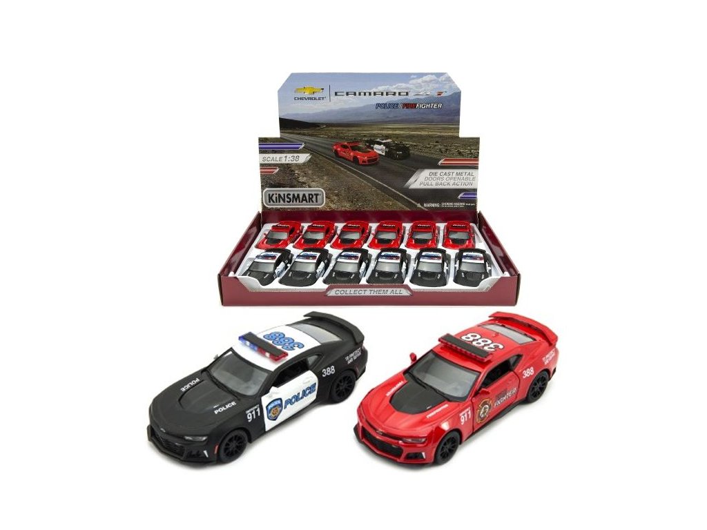 (BAL:12/72/144ks) Věrný kovový model auta Chevrolet Camaro.Na zpětné natažení. Otvírací dveře.Design: policie, hasiči.Poměr 1:38.Užijte si spoustu zábavy s tímto krásným autíčkem, které je vyrobené z kovu.Rozměr: 12x5x4 cm.Vhodné pro děti od 3 let.Barva: černá, červená.Prodej po 12ks v boxu.Rozměr boxu: 40,5 x 5 x 28 cm.Cena za jeden kus.Doplňkové parametry
