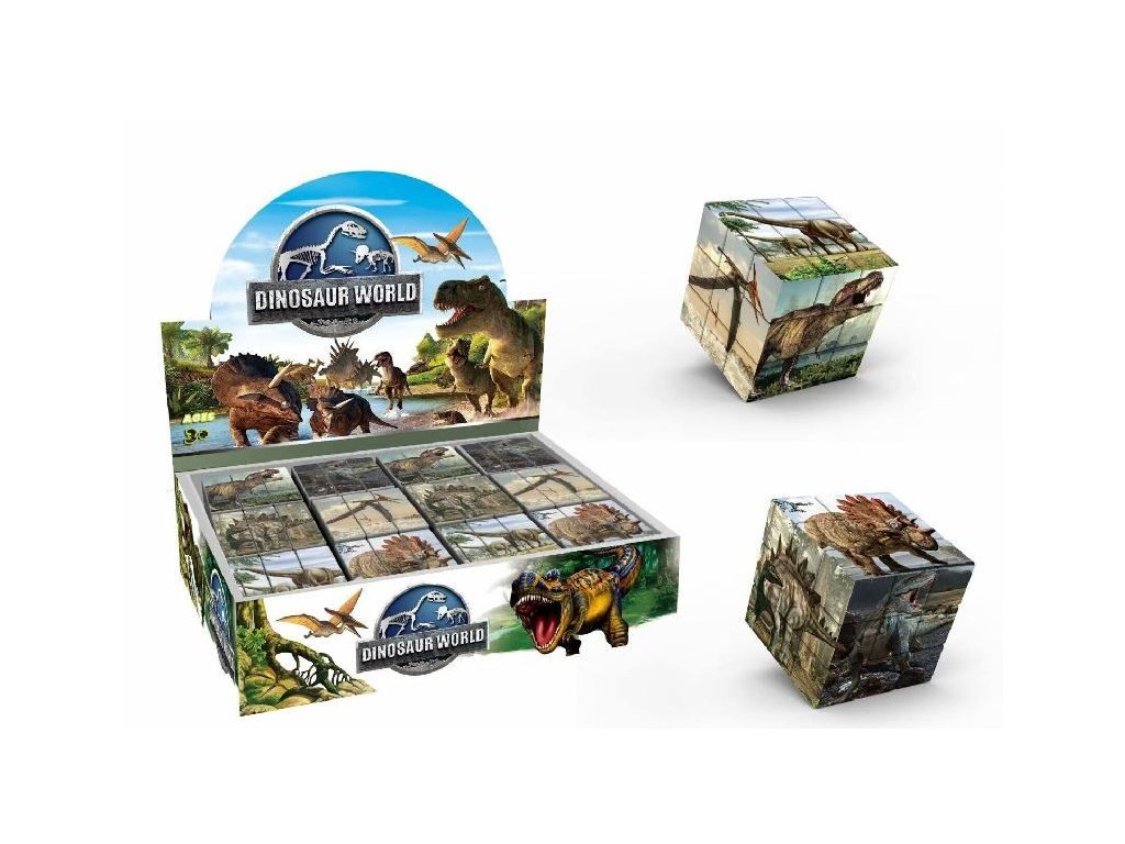 (BAL:12/72/144ks)Kostka hlavolam dinosaurus 3x3x3 pole, plast ve fólii 6x6x6cm 12ks v boxuZábava z pravěku! Klasická hlavolamová kostka v motivu dinosaurů potěší všechny malé i velké fanoušky těchto fascinujících tvorů. Otoč, slož a znovu rozlož! Skvělá hračka pro rozvoj logiky, soustředění a trpělivosti – a navíc s veselými dinosauřími ilustracemi.Vhodné pro děti od 6 let.Rozměr kostky: 6 × 6 × 6 cmRozměr boxu: 23,5 x 17,5 x 6cm.Balení: ve folii.Doplňkové parametry