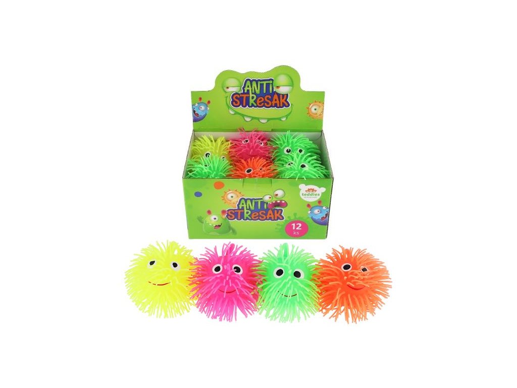 (BAL:1/12/72/144ks) Míček mačkací chlupatý antistresový svítící silikon.4 barvy.Aktivace blikání míčku - nárazem, úderem. Rozměry: průměr 8 cm. Vhodné pro děti od 3 let.Barva: růžová, oranžová, žlutá, zelená.Rozměr boxu: 25 x 15,5 x 14,5cm. Prodej po 12ks v boxu.Cena za jeden kus.Doplňkové parametry