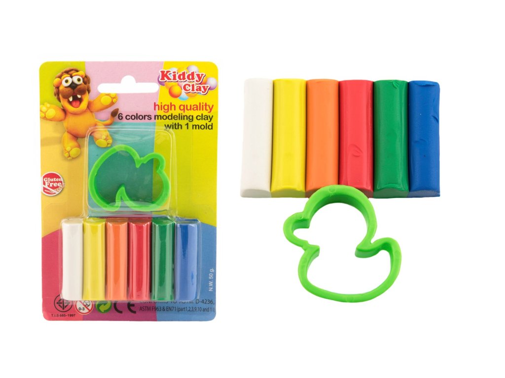 Teddies modelína-plastelína Kiddy Clay 50g 6ks s vykrajovátkem