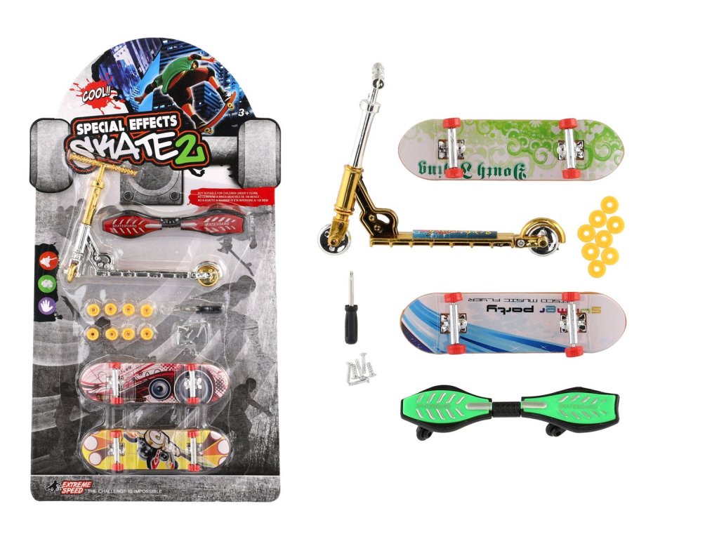 Teddies sada 2ks skateboard prstový šroubovací 10cm s waveboardem a koloběžkou plast