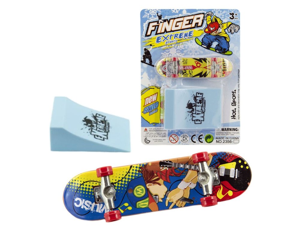 (BAL:1/120ks) Skateboard prstový s rampou plast 10cm.Design: extreme sports.Dětský plastový skateboard na ovládání prstem v sadě s rampou. Výzva pro procvičení motoriky prstů.Rozměr: 10x2,5x1,5 cm.Vhodné pro děti od 3 let.Barva: mix 10 barevných motivů.Balení: blistr.Cena za jeden kus.Doplňkové parametry