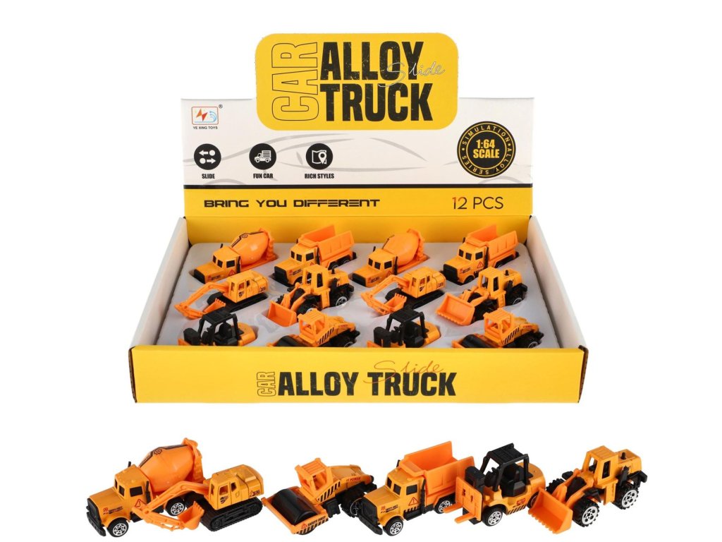 Teddies stavební auto - stroj Alloy Truck kov-plast 7,5cm na volný chod