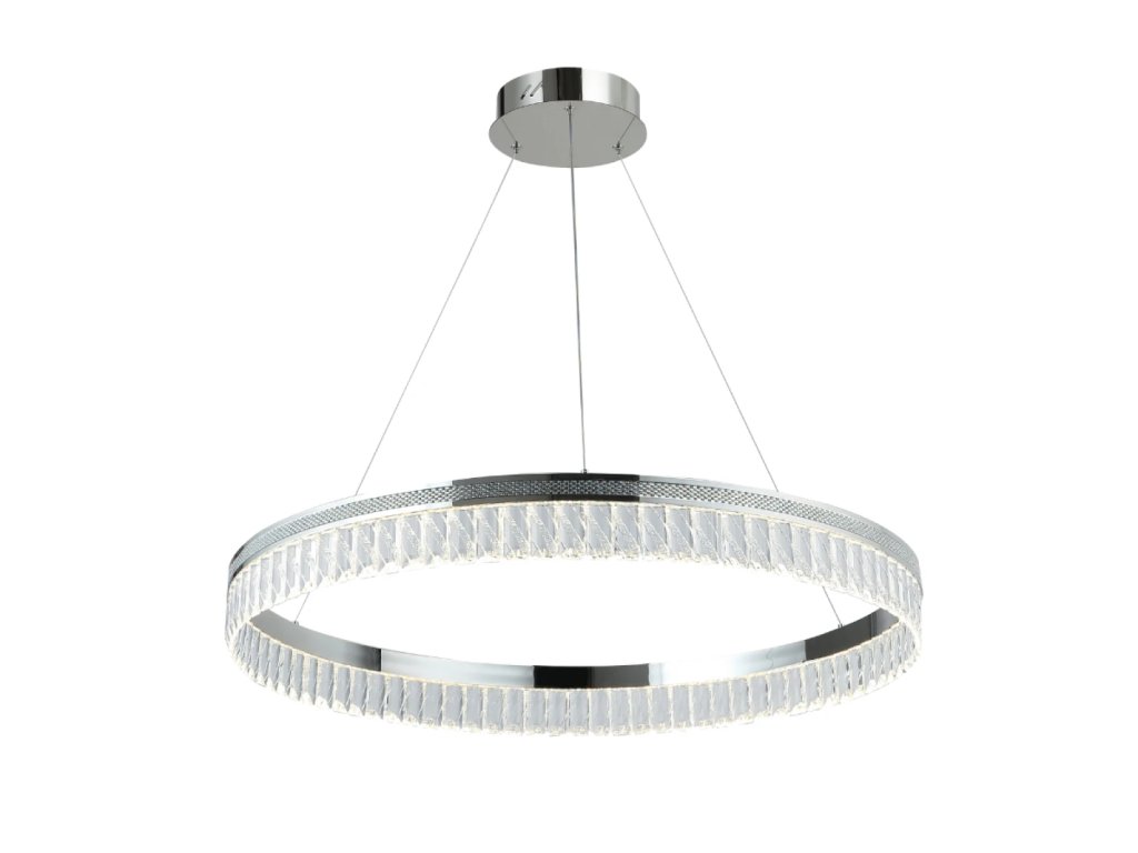 Prémiové materiály – kombinace lesklé kovové konstrukce a broušených křišťálů pro luxusní a sofistikovaný vzhled.
