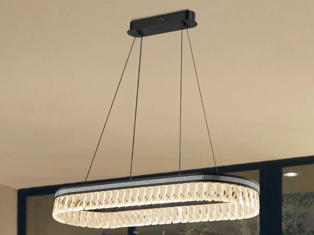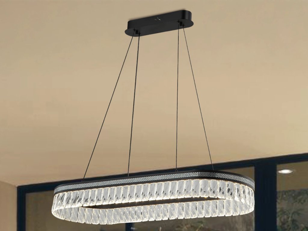 Prémiové materiály – kombinace lesklé kovové konstrukce a broušených křišťálů pro luxusní a sofistikovaný vzhled.