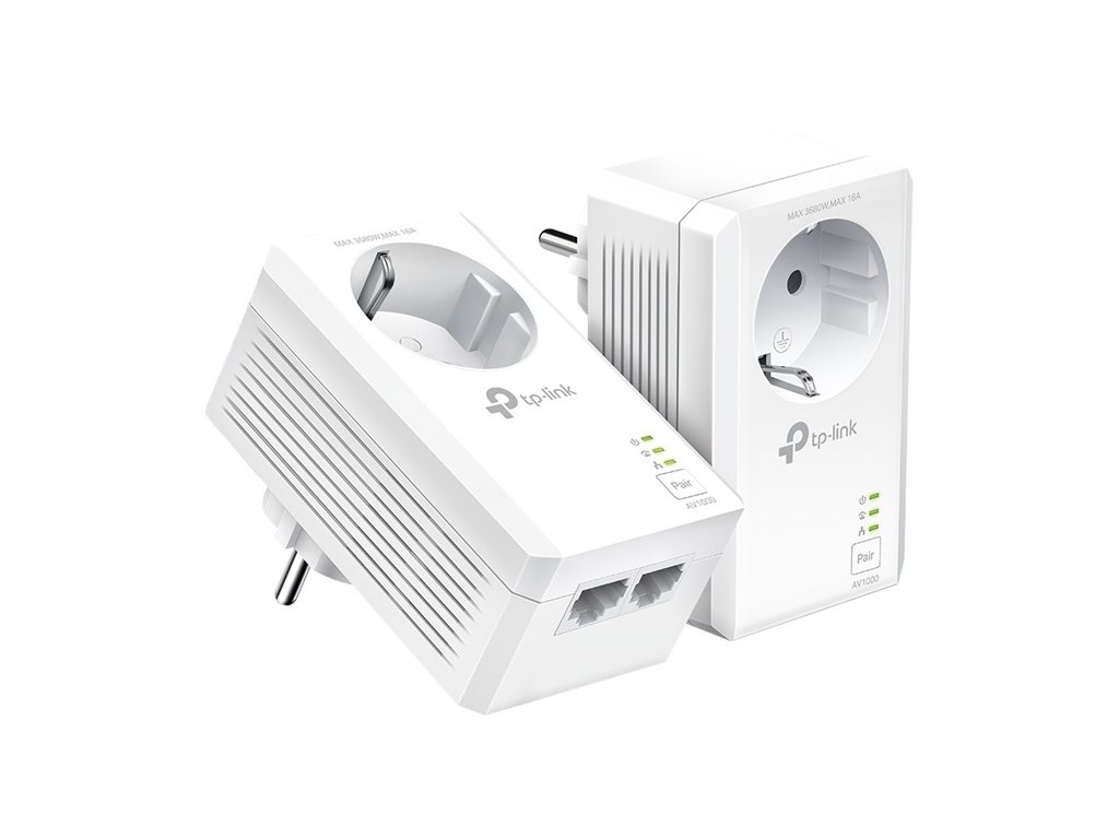 Set dvou powerline adaptérů, pro síťové spojení počítačů přes elektrickou instalaci. Rychlost přenosu až 1000 Mb/s (vhodné pro 4K video). Spojení až na vzdálenost 300 metrů přes elektrickou síť, Rozhraní: 2 × gigabitové porty, integrovaná elektrická zásuvka.Doplňkové parametry