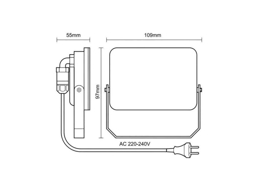 LED reflektor LF7121 disponuje na zadní straně konektorem pro snadné a rychlé připojení kabelů.
