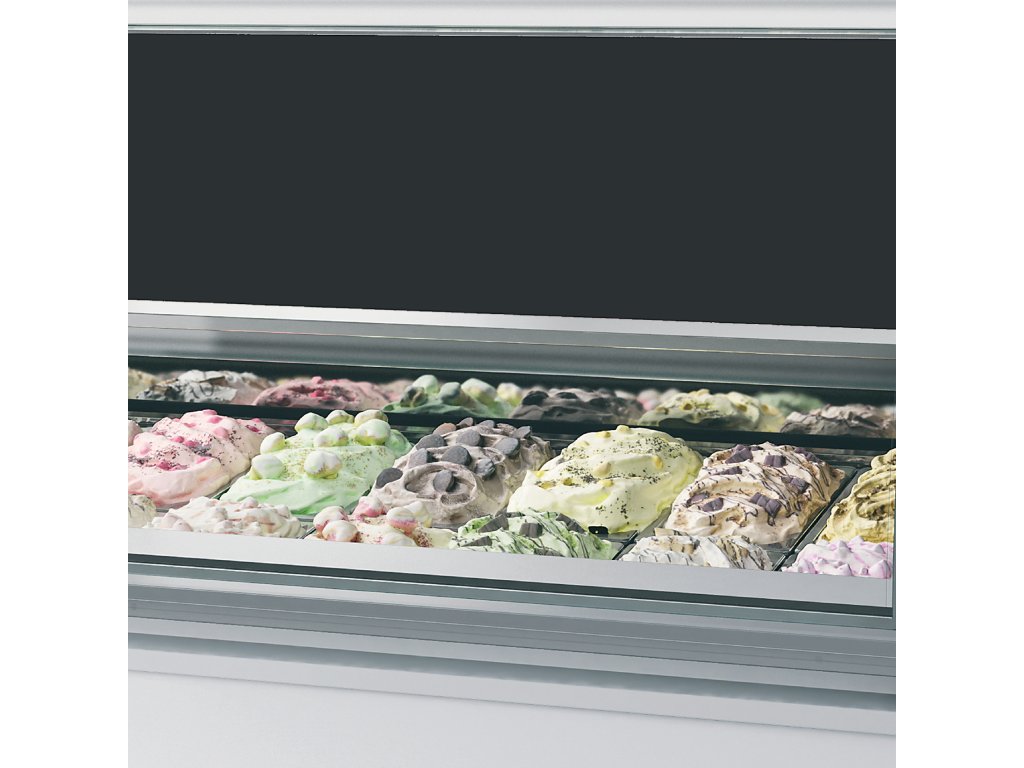 MILLENNIUM LX jsou k dispozici ve velikostech, do kterých se vejde 12 až 24 vaniček na zmrzlinu. Distributory MILLENNIUM jsou samozřejmě vhodné pro standardní gastronádoby na zmrzlinu GN 360x165x120 mm (nejsou součástí balení). Sklo je vyhřívané, aby se zabránilo orosení.Doplňkové parametry