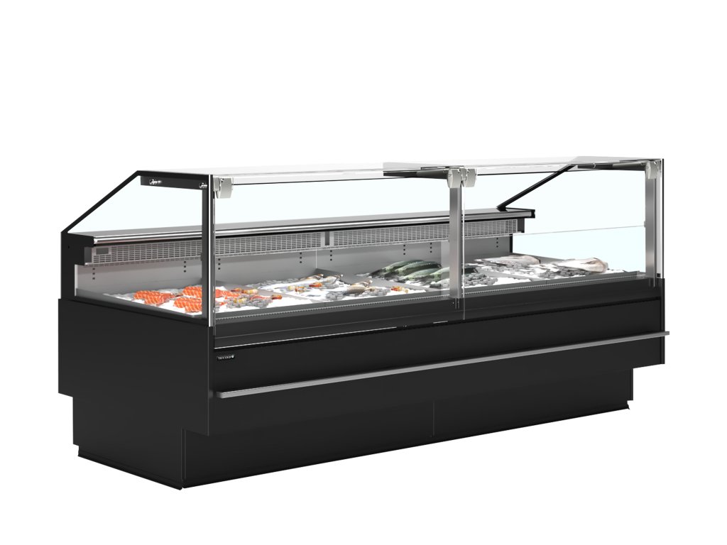 Tento vysoce kvalitní obslužný pult vnese styl a funkčnost do každého obchodu s čerstvými rybami. Vyznačuje se elegantním designem, sklem proti zamlžování a osvětlením LED v horní části. Stane se atraktivním středem pozornosti každé prodejny, ale hezkým vzhledem to nekončí. Nerezová vana o hloubce 50 mm je navržena speciálně pro bezpečné skladování čerstvých ryb na ledu. Upozorňujeme, že kondenzát vzniklý při odtávání, musí být vzhledem k jeho objemu, odváděn přímo do kanalizace.Doplňkové parametry