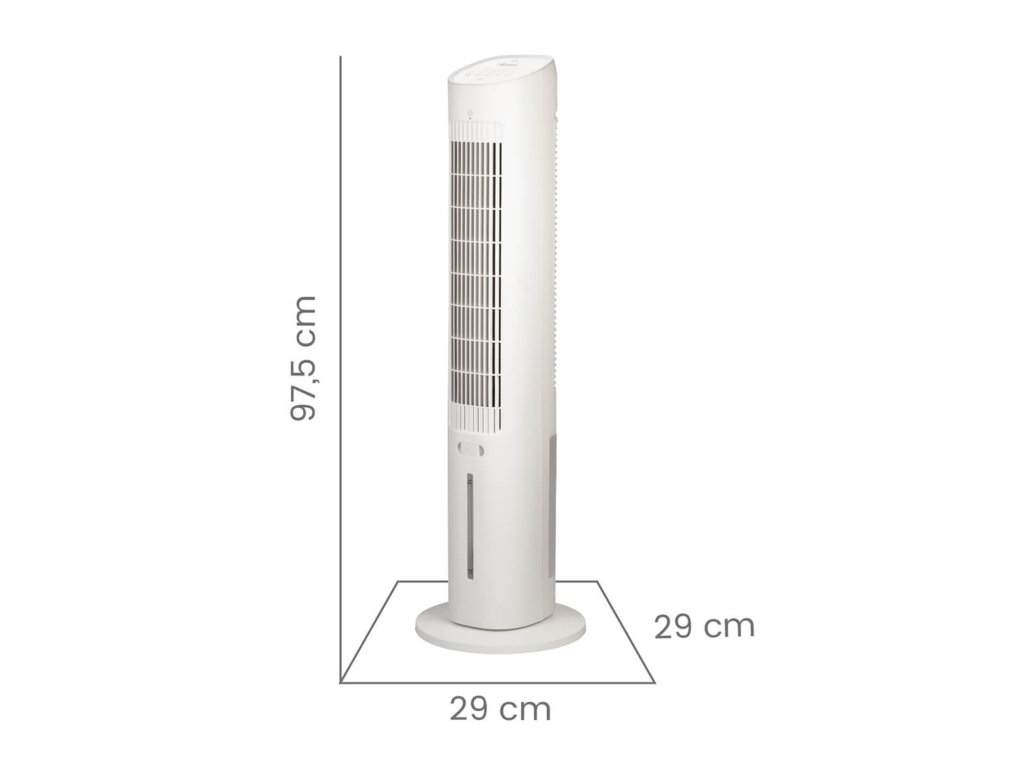 Mobilní věžový ochlazovač vzduchu, zvlhčovač a čistička vzduchu v jednom ArdesEOLO TOWER R09 Ochlazovač pracuje na principu profukování vzduchu přes vodní filtry, kde se vzduch nasytí vodní párou a dojde k ochlazení vzduchu. Při přidání ledu do zásobníku dosáhneme vyššího výkonu ochlazení až o 3-5°C. Ochlazovač je vhodný všude tam, kde standardní ventilátory neposkytují dostatečné chlazení a klasická klimatizace není ekonomicky výhodnou alternativou. Odpařovací vzduchové chladiče jsou všestranné, lehké a s nízkou spotřebou energie. Lze je použít kdekoli, vystřelují proud vzduchu oscilujícími lamelami, aby rovnoměrně distribuovaly osvěžující vzduch. Mohou pracovat s vodou a ledem. bezdrátové dálkové ovládání 3 rychlosti automatické vyklápění do stran časovač 12 hodin dálkové ovládání a dotykový ovládací panel přirozený vánek a režim spánku nádrž o objemu 3 litry a aroma difuzér 2 nádobky na led může pracovat s vodou a ledem průtok vzduchu 26,1 m3/min hlučnost 62 dBDoplňkové parametry