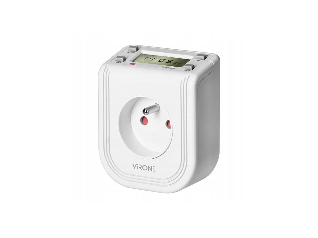 Zásuvka s elektronickým časovačem;Napájení:230 V~,50 Hz;Typ zásuvky:French(typ E), 2P+Z; Stup.ochrany: IP20; Proud:16 A;Max.zatížení: 3680 W;Zabudovaná baterie;16 programů;Min.doba zapnutí:1 min;Max.nastavení času: 168 h;Max.nastavení dnů:7;Horní LCD displej;fce"RANDOM"-ideální proti nezvaným hostůmDoplňkové parametry