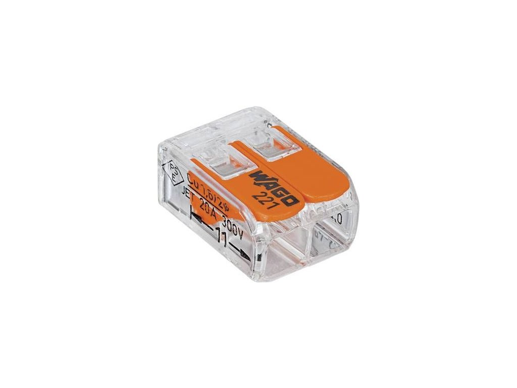 typ 221-412› počet svorek: 2› jmenovité napětí: 450 V~› jmenovitý proud: 32 A› průřez vodiče: 0,2 - 4 mm2Svorky s páčkou série 221 jsou použitelné pro všechny běžné druhy vodičů. Pro průřezy vodičů od 0,14 do 4 mm2 (lankové) nebo 0,2 až 4 mm2 (jedno- nebo vícežílové). Díky jmenovitému proudu od 32 A a jmenovitému napětí od 450 V je série 221 vhodná pro rozličné aplikace. Typické použití: připojení svítidel, motorů žaluzií, domovních telefonů, ovládání dveří a vrat. V průmyslu jsou vhodné pro připojení motorů a čerpadel.Doplňkové parametry