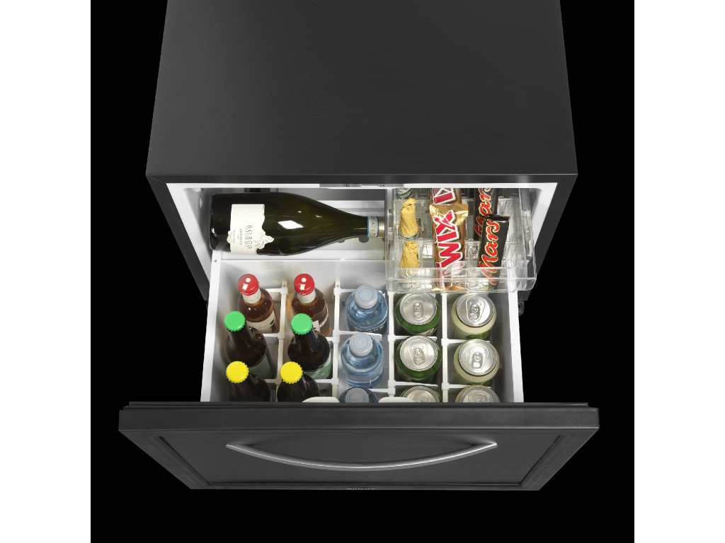 Minibary se zásuvkami řady TD se skvěle hodí do hotelových pokojů. Minibar můžete vložit například do nočního stolku, a nabídnout tak svým hostům snadný přístup ke studeným nápojům a občerstvení. Minibary jsou vybaveny tichým kompresorovým systémem. Mají elegantní design, lze je snadno zabudovat a mají nízkou spotřebu energie.Doplňkové parametry